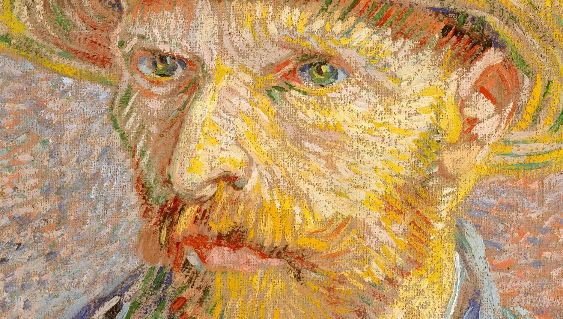 Van Gogh produced more than twenty self-portraits during his Parisian sojourn (1886–88). Short of funds but determined nevertheless to hone his skills as a figure painter, he became his own best sitter: “I purposely bought a good enough mirror to work from myself, for want of a model.” This picture, which shows the artist’s awareness of Neo-Impressionist technique and color theory, is one of several that are painted on the reverse of an earlier peasant study. (MET)