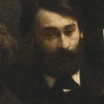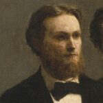 Coin de table is a group portrait as much as a testimony to the literary history of the 19th century, of the poetic movement of Parnassus in particular. At the end of a table, several men are gathered after a meal. Three are standing, from left to right: Elzéar Bonnier, Emile Blémont, Jean Aicard. Five are seated, Paul Verlaine and Arthur Rimbaud, Léon Valade, Ernest d’Hervilly, Camille Pelletan. All are dressed in black except one, Camille Pelletan, who is not a poet like the others, but a politician. Emile Blémont distinguished by his central position acquired the painting which he offered to the Louvre in 1910. At least two figures are missing: Charles Baudelaire, who died in 1867, and to whom the painting was initially intended to pay homage, and Albert Mérat who did not wish to be represented in the company of the sulphurous Verlaine and Rimbaud and was, it is said, replaced by a bouquet of flowers.