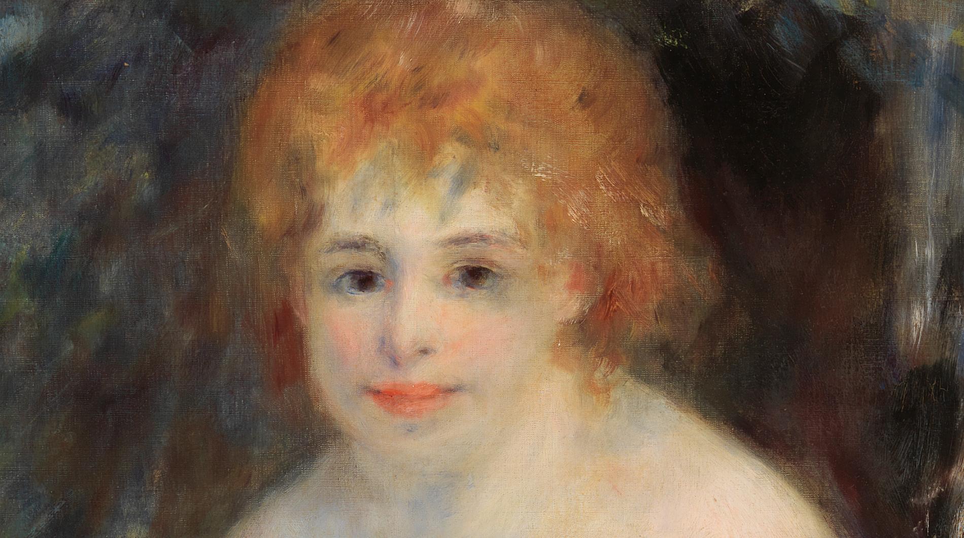 The model here is Henriette Henriot, an actress who posed frequently for Renoir during his impressionist years. Renoir captures her in a state of undress, perhaps just having cooled off in the water; the damp undergarment clings to her thigh. This painting would have scandalized audiences during Renoir‘s time. The colors, first of all, with purplish blotches falling across shoulders and legs, were jarring for audiences used to looking at smooth idealized bodies. Moreover, Renoir has depicted a real woman rather than some mythological nymph—a breach of decorum. (Barnes)