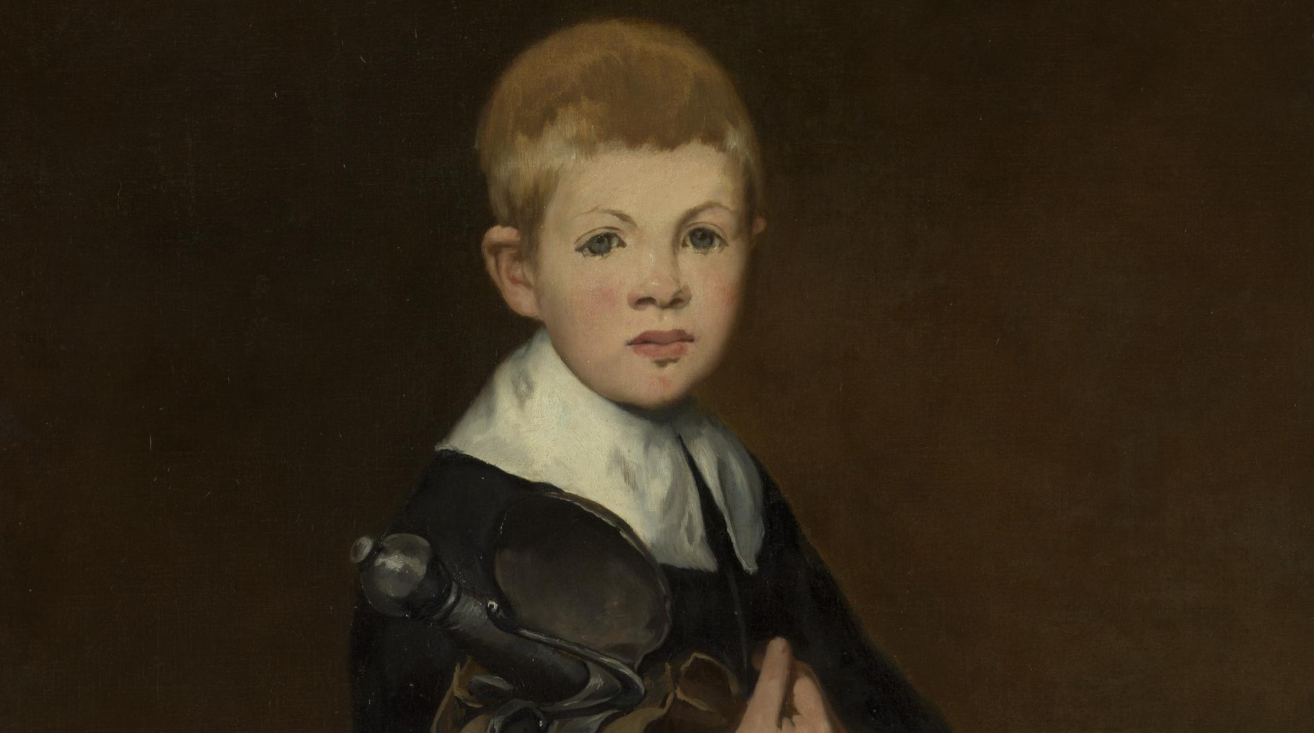 Manet’s stepson, Léon Koëlla-Leenhoff, recalled that he had posed for this picture in 1861, when he was about ten years old. Manet dressed him in a seventeenth-century costume, adding a period sword as a prop—a tribute to the great Spanish painters he admired, notably Velázquez. Critics reviewed the work favorably on the five occasions that Manet exhibited it between 1862 and 1872.