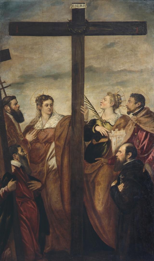 Sant’Elena, Santa Barbara, Sant’Andrea, San Macario, un altro santo e un devoto adorano la croce (Saint Helen, Barbara, Andrew, Macarius, another Saint and a Devote in Adoration of the Cross)