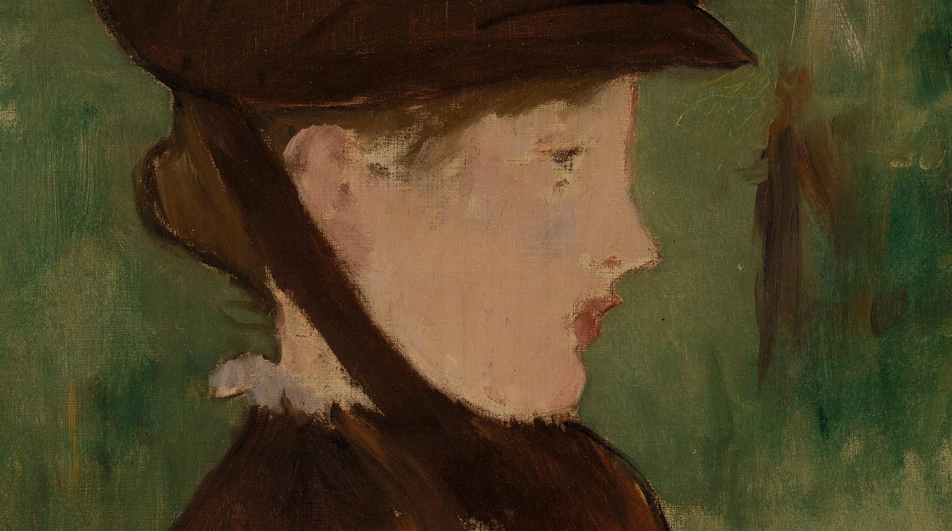 In this depiction of a fashionable young woman in a Parisian garden, reflective of his painting style in the final years of his life, Manet conveys repose in his subject’s gaze and movement in the swirl of her skirt. Through loose, summary brushwork, a bold line indicates clasped hands wearing gloves, and simple touches of color form eyes and mouth. The limited, earthy palette and the flattening of the figure’s face evidence the artist’s fascination with Japanese wood-block prints, which gained popularity in Paris during the previous decade through exhibitions of Japanese art. (Barnes)