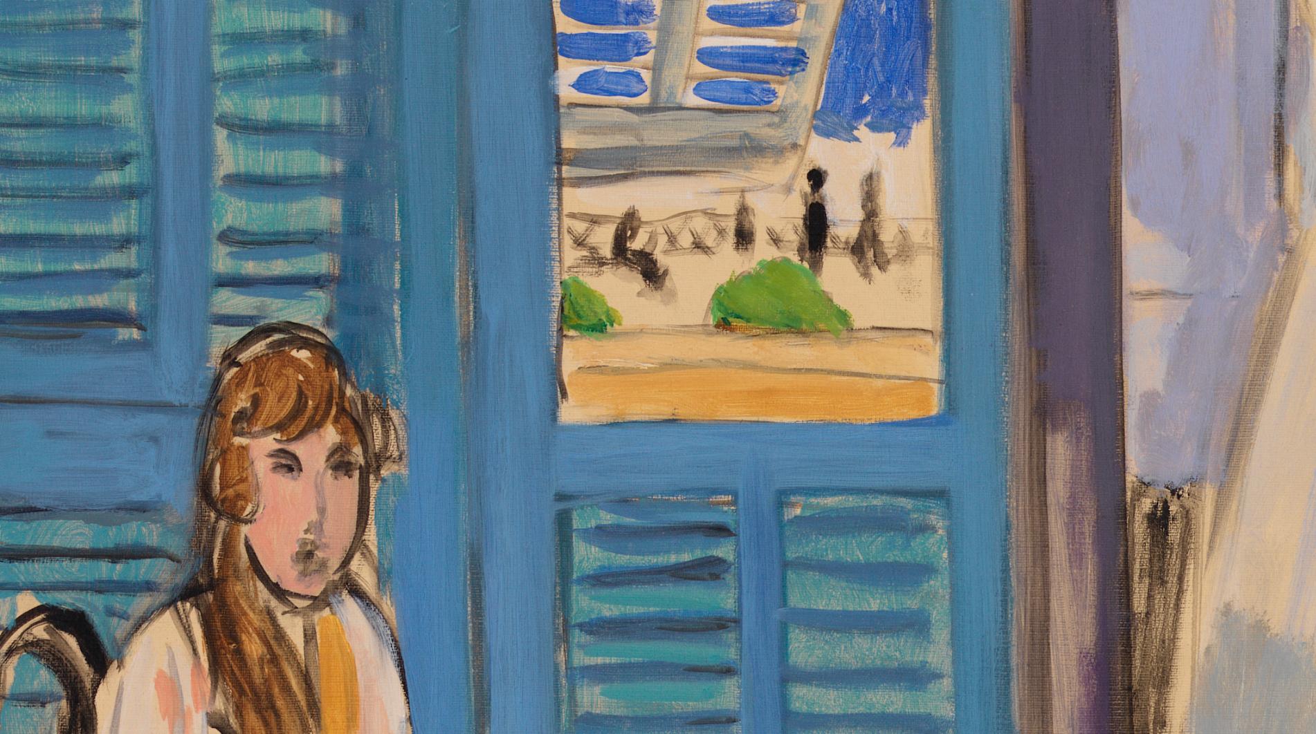 Henri Matisse painted this canvas in his hotel room in Nice, in the South of France, where he spent his winters beginning in 1917. The large window gives the painting a theatrical feel, as drapes open like stage curtains to reveal a single actor. One window is propped open, allowing for a glimpse outside; the small, neatly contained view suggests a landscape painting hanging on a wall. (Barnes)
