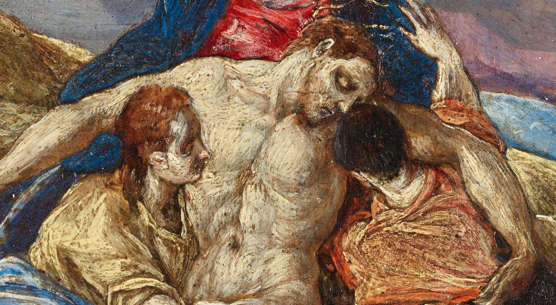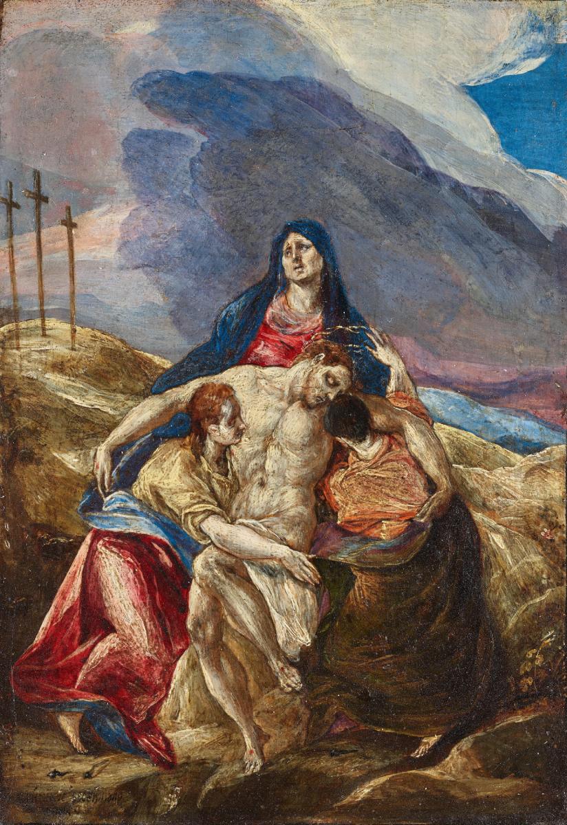 El Greco was born in the Venetian territory of Crete and trained in Venice before moving to Rome. There he encountered the work of Michelangelo, whose influence is visible in the composition of this Lamentation. After leaving Rome, El Greco lived and worked in Spain, where he painted most of his masterpieces. (PhAM)