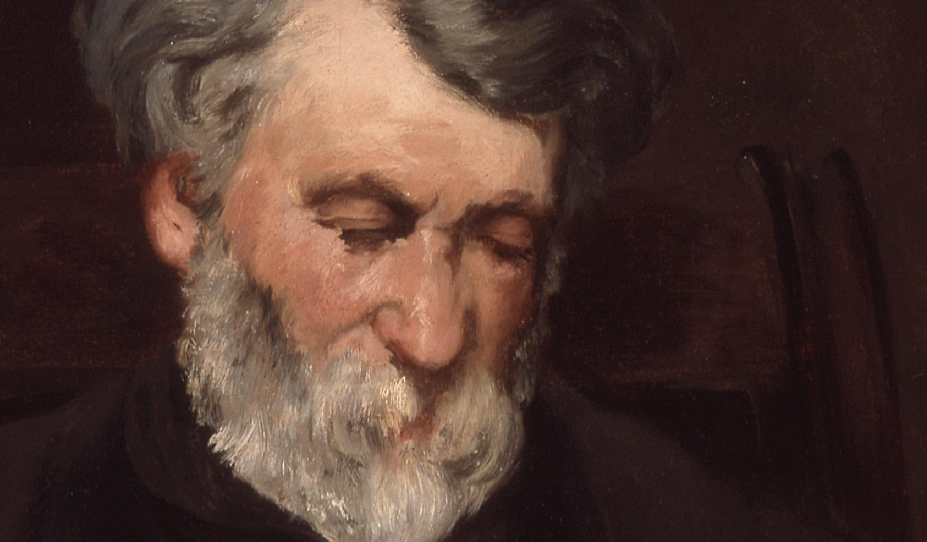 Edouard Manet represented his elderly friend, the painter Joseph Gall, absorbed in reading a large book. The ledge in the foreground serves as a barrier, establishing distance between the sitter and the viewer. The artist’s palette is muted and restrained. Although Manet never participated in any of the Impressionist exhibitions, he was closely associated with the group; his lively, inventive brushwork is evident in the sitter’s left hand, depicted with a few rapid and abstract brush marks. (SLAM)
