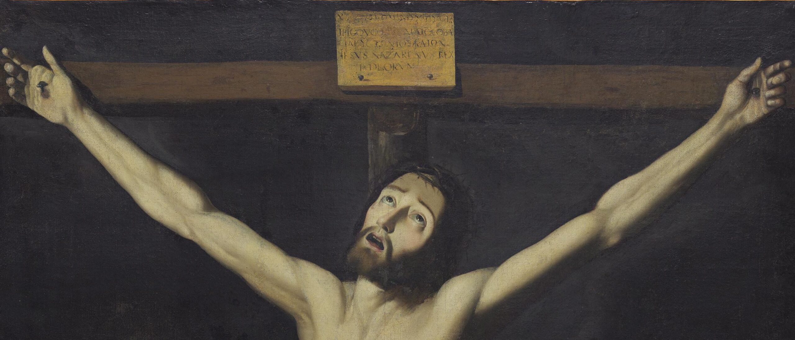 The painting has been dated to an early phase of the artist’s career, during which he depicted this subject on a number of occasions. The earliest known example is the canvas now in the Art Institute of Chicago of 1627, painted for the Dominican monastery of San Pablo, Seville. Considered one of his masterpieces, in that painting Zurbarán’s Christ is suspended from a rough wooden cross to which he is nailed with four nails. The starkly dramatic image is created from a chiaroscuro that defines and sculpts the Saviour’s body. The artist approached the theme in a variety of different manners, depicting him alive, as in the present example; serenely dead, as in the work of 1627 mentioned above; with saints, as in Saint Luke beneath the Cross in the Museo del Prado; and with donors. Zurbarán painted this subject on numerous occasions during the course of his career.