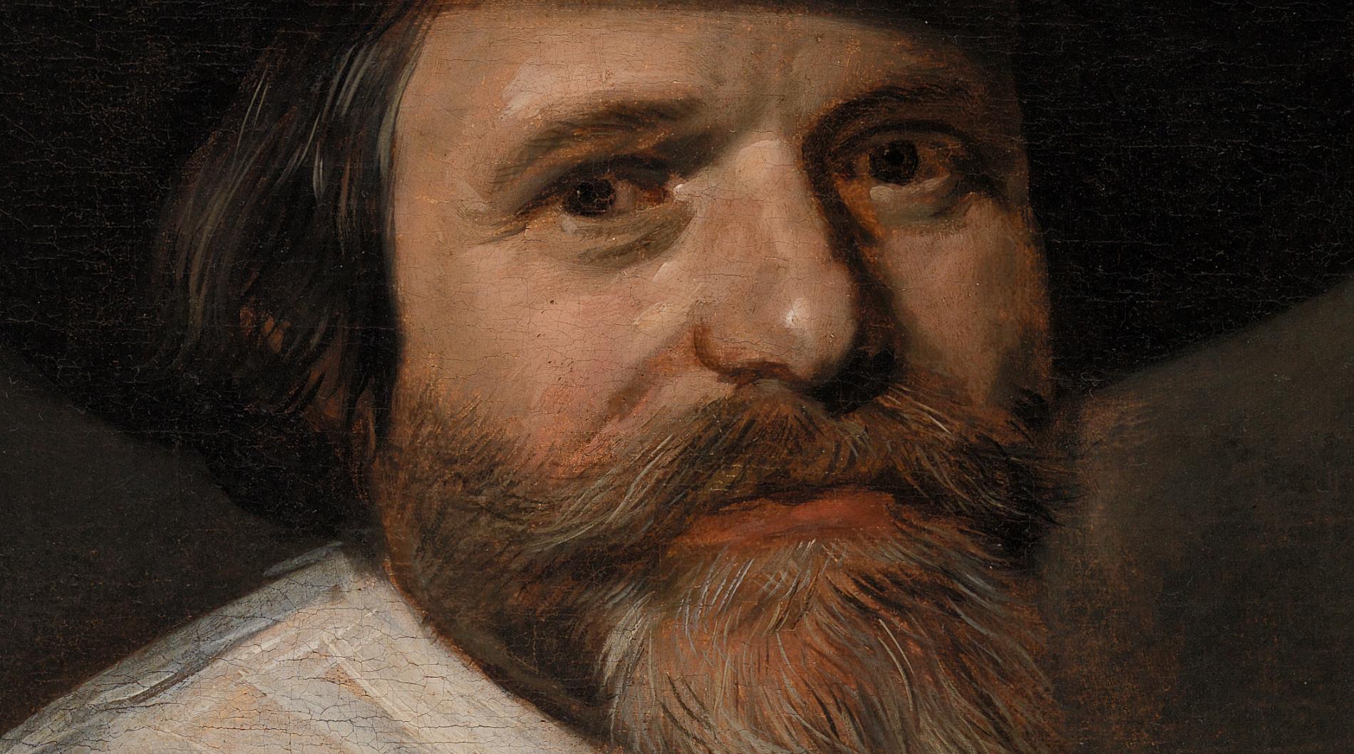 For a long time the identity of this bearded man was unknown. Recent scholarship reveals that it is very likely a portrait of Mathijs Jansz Boeckels, a watchmaker from the Dutch city of Haarlem. This explains the emphasis of the gold timepiece at lower right; though small, the object gleams with importance. Boeckels came from a long line of prominent Mennonite watchmakers. His clothing is appropriately dark and simple, reflecting Mennonite restraint; moreover he lacks the showy white cuffs typically worn by the Dutch well-to-do. (Barnes)