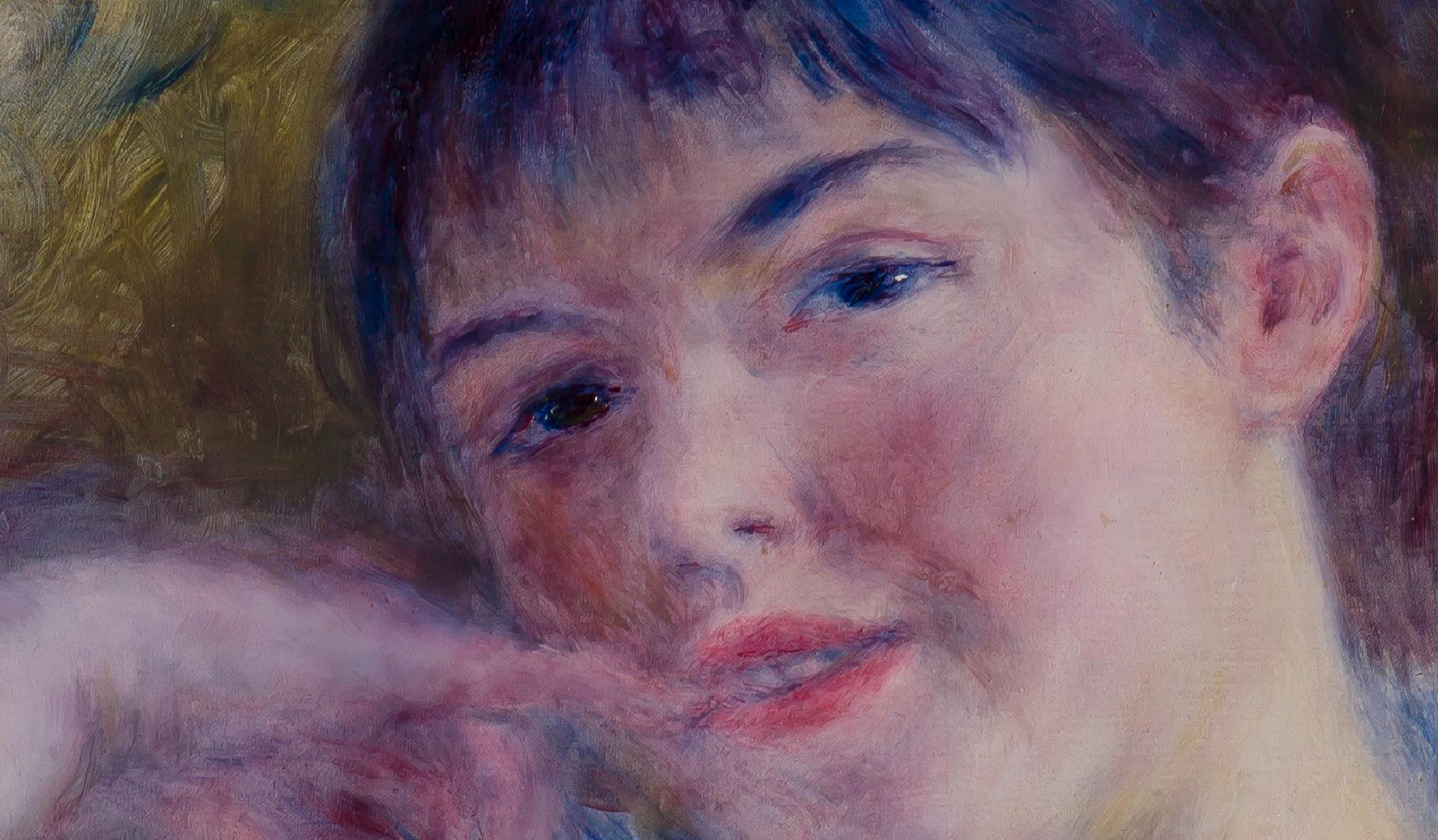 This vibrant, colorful work depicts a young, unidentified model that Pierre Auguste Renoir painted at his studio in the Montmartre district of Paris. He used his characteristically feathery brushwork, particularly in his representation of the background floral wallpaper. The mild eroticism of the sitter’s gaze—the English painter Walter Richard Sickert later described this as a “saucy” portrait—is enhanced by the way in which she idly places her finger in her mouth. (SLAM)