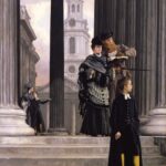 Standing underneath the portico of the newly constructed National Gallery in London, with the church of Saint Martin-in-the-Fields framed behind them, a fashionably dressed couple contemplates which site to visit next. The gentleman consults his guidebook, while his female companion uses her umbrella to gesture towards Trafalgar Square, which lies in front of them. Tissot, who was a close friend of the avant-garde Impressionists, was a great painter of fashionable members of society. By contrast, he included a slender youth in the foreground, one of the so-called bluecoat boys, who were students of the charitable Christ’s Hospital School, and who often acted as tour guides to visitors to the city. (MAM)