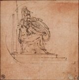 Parmigianino (1503-1540) Figura seduta di Pallade Atena (Seated Figure of Pallas Athena) 1531–1535 Pen and brown ink on light tan laid paper prepared with salmon wash, 5.8 × 5.8 cm Princeton University Art Museum, Princeton These three fragments represent Parmigianino’s preliminary ideas…