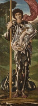Burne-Jones, Edward (1833-1898) Saint Barbara 1866–1870 Egg tempera with oil glazes (?) and shell gold over charcoal and graphite on paper; mounted to canvas, 95.3 x 41.3 cm National Gallery of Art, Washington