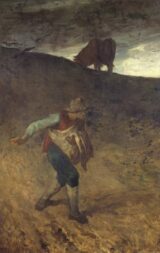 Millet, Jean-François (1814-1875) La famille paysanne (The peasant family) 1871–1872 Oil on canvas, 110.4 x 81 cm National Museum Wales, Cardiff The British painter Sickert commented: ‘The sublime man and his stolid spouse face the spectator with all the gravity and symmetry…