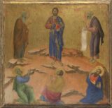 Duccio di Buoninsegna (c.1255-c.1319) Trasfigurazione (The Transfiguration) c.1307–1311 Egg tempera on wood, 48.5 × 51.4 cm National Gallery, London This painting was part of the predella (the bottom tier) of the Maestà altarpiece made for the Cathedral of Siena. Christ stands at the…
