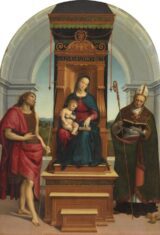 Raffaello (1483-1520) Madonna Ansidei (Ansidei Madonna: The Virgin and Child with Saint John the Baptist and Saint Nicholas of Bari) 1505 Oil on poplar, 216.8 × 147.6 cm National Gallery, London This is the main panel of the Ansidei Altarpiece that the…