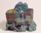 Gauguin, Paul (1848-1903) Jardinière avec bretonne et moutons (Planter with Breton Woman and Sheep) 1886–1887 Partially painted and enamelled stoneware, incised and modelled decoration, 13.3 x 15.5 x 11.5 cm Petit Palais, Paris Gauguin met the ceramicist Chaplet in 1886. He worked…