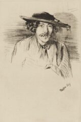 Whistler, James Abbott McNeill (1834-1903) Portrait of the Artist 1859 Etching and drypoint on paper, 22.5 x 14.8 cm Victoria and Albert Museum, London Self-portrait etching by James Abbott McNeill Whistler. Signed and dated 1859. The artist depicts himself full-face, bust-length, staring…