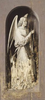 Memling, Hans (c.1430-1494) Virgin Annunciate (Calvary Triptych, right shutter, exterior) 1480s Oil on oak, 56.2-57.8 × 28 cm Museum of Fine Arts, Budapest Interior: Memling, Hans (c.1430-1494) The Resurrection 1480s Museum of Fine Arts, Budapest Calvary Triptych, left shutter: Memling, Hans (c.1430-1494) Christ…