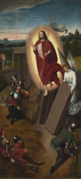 Memling, Hans (c.1430-1494) The Resurrection (Calvary Triptych, right shutter) 1480s Oil on oak, 56.2-57.8 × 28 cm Museum of Fine Arts, Budapest Exterior: Memling, Hans (c.1430-1494) Virgin Annunciate 1480s Museum of Fine Arts, Budapest Calvary Triptych, left shutter: Memling, Hans (c.1430-1494) Christ Carrying…