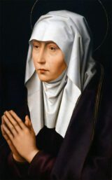 Campin, Robert (c.1378-1444) A Woman c.1435 Oil with egg tempera on oak, 40.6 x 28.1 cm National Gallery, London This striking portrait of a woman forms a pair with Campin’s portrait A Man: the sitters were clearly married. We don’t know…