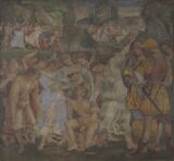 Signorelli, Luca (c.1445-1523) Coriolano convinto dalla sua famiglia a risparmiare Roma (Coriolanus persuaded by his Family to spare Rome) c.1509 Fresco, detached and mounted on canvas, 125.7 x 125.7 cm National Gallery, London This picture, painted in fresco, was part of a…