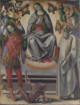 Signorelli, Luca (c.1445-1523) La Sacra Famiglia (The Holy Family) c.1490–1495 Oil on wood, 80.6 x 64.8 cm National Gallery, London The Virgin Mary holds her clothing out the way as Christ leans towards her to breastfeed, and Saint Joseph dotes upon him.…