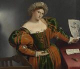 Lotto, Lorenzo (1480-1557) Ritratto di gentildonna ispirata a Lucrezia (Portrait of a Woman inspired by Lucretia) c.1530–1533 Oil on canvas, 96.5 x 110.6 cm National Gallery, London A sumptuously dressed young woman stands between the back of an armchair and a table.…