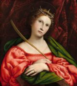 Lotto, Lorenzo (1480-1557) Santa Caterina (Saint Catherine) 1522 Oil on panel, 57.2 x 50.2 cm National Gallery of Art, Washington Shown from the waist up and nearly filling the picture, a young woman with pale skin, dressed in a jewel-toned gown and…