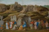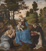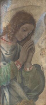 Lippi, Filippino (1457-1504) Adorazione del Bambino (The Adoration of the Child) c.1475–1480 Oil on poplar panel, 81.5 x 56.3 cm National Gallery of Art, Washington A winged angel, a woman, and a baby are gathered on a terrace that overlooks a softly…