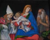 Lotto, Lorenzo (1480-1557) Madonna con Bambino tra i Santi Ignazio di Antiochia e Onofrio (Madonna and Child between Saints Ignatius of Antioch and Onuphrius) 1508 Oil on panel, 53 x 67 cm Galleria Borghese, Roma This signed and dated painting in its…