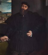 Lotto, Lorenzo (1480-1557) Ritratto di uomo (Portrait of a Man, Mercurio Bua) c.1535 Oil on canvas, 118 x 105 cm Galleria Borghese, Roma The character, long believed to be a self-portrait of the artist, is depicted inside a closed environment, the…