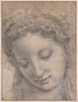 Bronzino (1503-1572) Testa di donna inclinata, sorridente, occhi bassi (Woman’s head tilted, smiling, eyes downcast) c.1543 Black chalk on paper, 28.8 × 21.6 cm Musée du Louvre, Paris Study for the young woman appearing on the far left of the composition…