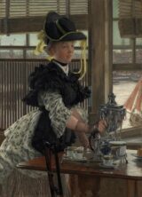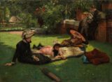 Tissot, James (1836-1902) En plein soleil (In Full Sunlight) c.1881 Oil on wood, 24.8 x 35.2 cm Metropolitan Museum of Art, New York Cascading sunlight illuminates the colorful open parasol and beribboned hats of the group lounging on the grass. This…