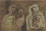 Moore, Henry (1898-1986) Two Mothers Holding Children 1941 Pen, ink, wax crayon and watercolor on paper, 38 x 56.4 cm Museo Thyssen-Bornemisza, Madrid ©The Henry Moore Foundation. All Rights Reserved Two Mothers Holding Children, another of the drawings from the series…