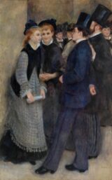 Renoir, Pierre-Auguste (1841-1919) La Sortie du conservatoire (Leaving the Conservatory) 1876–1877 Oil on canvas, 187.5 x 117.5 cm Barnes Foundation, Philadelphia Renoir uses subtle body language to convey the flirtatious exchanges among a group of young Parisians gathered outside a music…