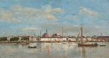 Boudin, Eugène (1824-1898) Le quai à Anvers (The Quay at Antwerp) 1874 Oil on panel, 34.6 x 63.81 cm Dallas Museum of Art, Dallas Billowing white clouds and the steeples and smokestacks of the bustling Belgian city of Antwerp are…