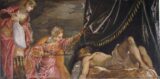 Tintoretto, Jacopo (1518-1594) Giuditta e Oloferne (Judith and Holofernes) 1552–1555 Oil on canvas, 58 x 119 cm Museo del Prado, Madrid This is one of seven canvases (P00386, P00388, P00389, P00393, P00394, P00395, P00396) in a group linked by the…