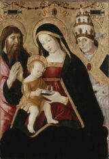 Pinturicchio (c.1454-1513) Madonna col Bambino tra San Girolamo (?) e San Gregorio Magno (Madonna and Child between Saint Jerome (?) and Saint Gregory the Great) 1st quarter of the 16th century Oil on poplar, 59.2 x 41 cm Musée du…