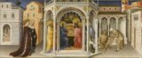 Gentile da Fabriano (c.1370-1427) La presentazione al tempio (The Presentation in the Temple) c.1423 Oil on poplar, 26.5 x 62.5 cm Musée du Louvre, Paris Element of the predella of the altarpiece painted in 1423 at the request of Palla Strozzi…