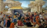Botticelli, Sandro (c.1445-1510) Adorazione dei Magi (Adoration of the Magi) 1478–1482 Tempera and oil on panel, 68 x 102 cm National Gallery of Art, Washington About three dozen people gather in a grassy field to either side of a crumbling structure to…