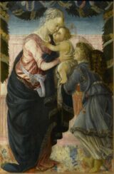 Botticelli, Sandro (c.1445-1510) Madonna col Bambino e angelo (Madonna and Child with an Angel) c.1465 Tempera on panel, 87 x 60 cm Spedale degli Innocenti, Firenze An early work by Sandro Botticelli, it is inspired by the famous Madonna with child…