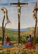 Antonello da Messina (c.1430-1479) Crocifissione (Calvary) 1475 Oil on panel, 52.5 x 42.5 cm Koninklijk Museum voor Schone Kunsten, Antwerp The dead Christ hangs from the Cross on Golgotha, also known as Mount Calvary. The Virgin Mary is mourning at his…