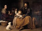 Murillo, Bartolomé Esteban (1617-1682) Sagrada Familia del pajarito (Holy Family with a Bird) c.1650 Oil on canvas, 144 x 188 cm Museo del Prado, Madrid A domestic scene filled with tenderness showing the Virgin Mary winding a skein of thread and…