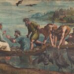 Raffaello (1483-1520) La pesca miracolosa (The Miraculous Draught of Fishes, Luke 5: 1-11) c.1515–1516 Cartoon for a tapestry, 322 × 401 cm Victoria and Albert Museum, London The Raphael Cartoons are designs for tapestries and were commissioned from Raphael by Pope Leo…